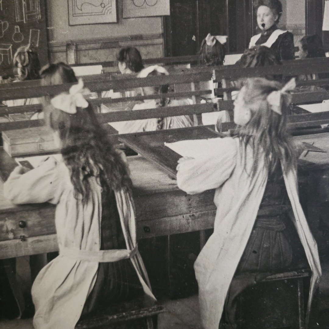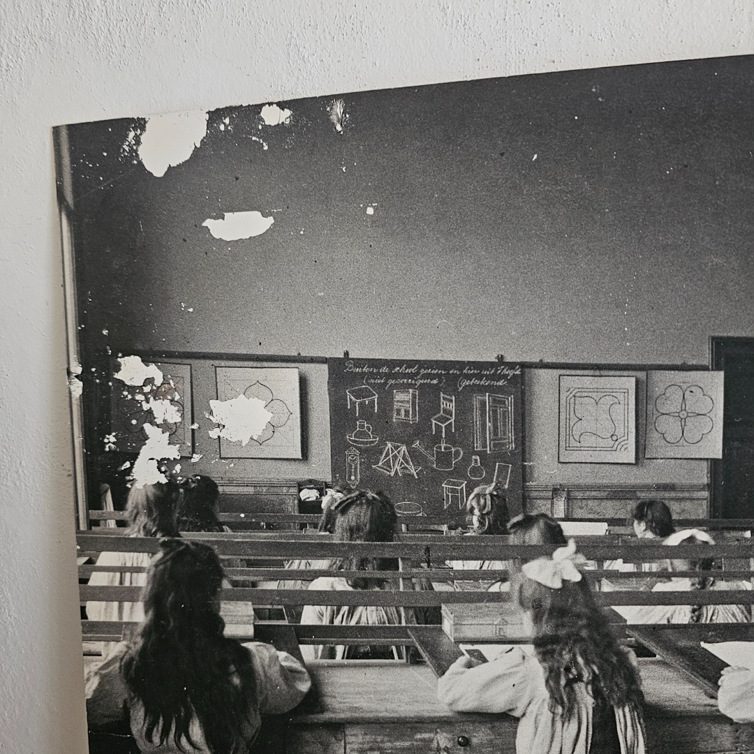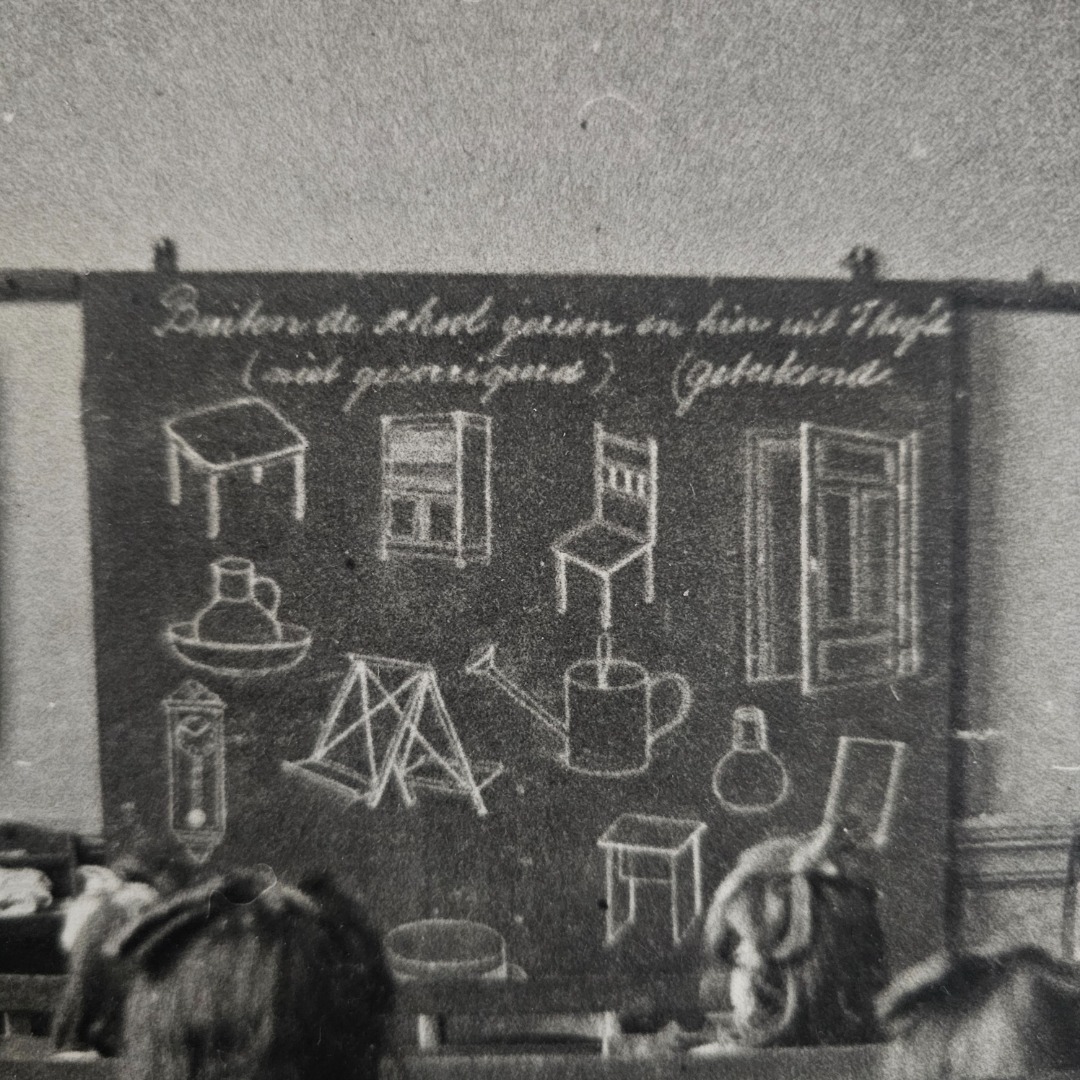 Deze plaat werd gebruikt om ten toon te stellen zodat men kon zien hoe een klaslokaal er vroeger uitzag.